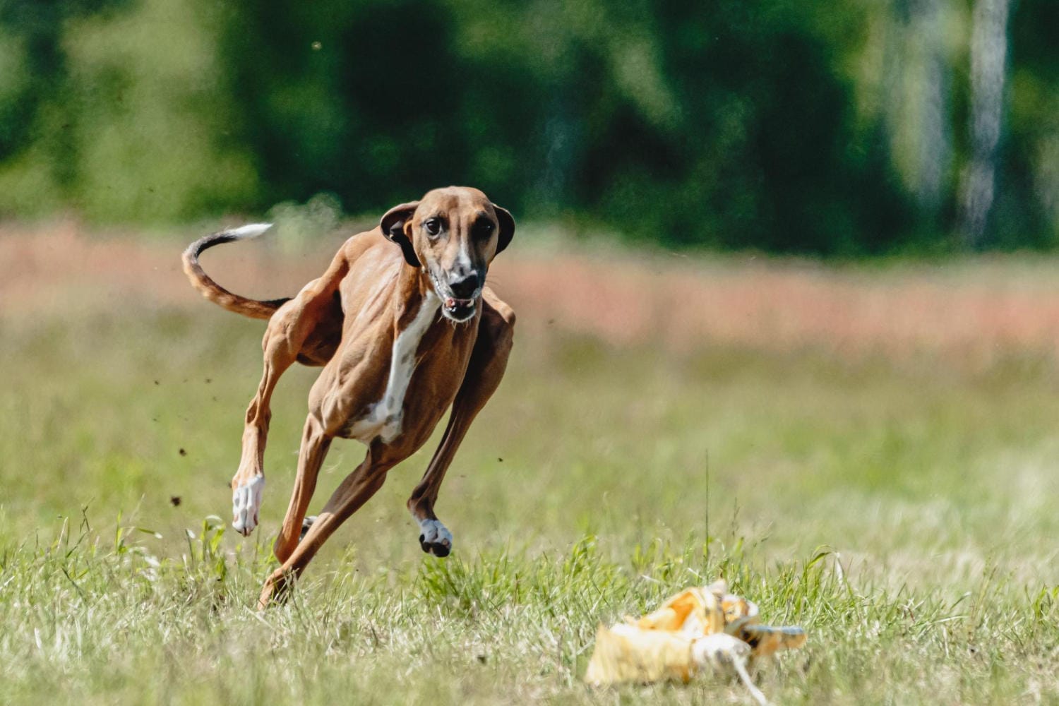 - Widoczne Kości: Żebra, linia kręgosłupa i mięśnie są wyraźnie widoczne pod cienką skórą – taka budowa jest wymogiem wzorca rasy, a nie objawem wychudzenia.